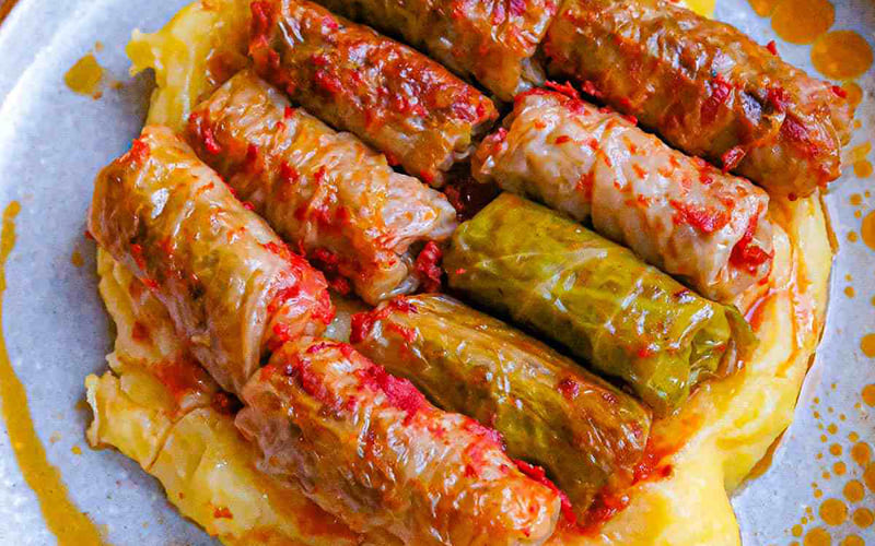 Another must-try classic is Sarmale, cabbage rolls made with fermented cabbage leaves stuffed with minced meat, rice, and spices, slowly cooked in a tomato sauce. This dish is typical at celebrations and family gatherings.