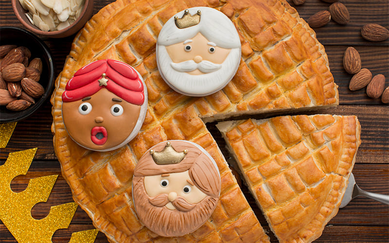 However, the food traditions vary from country to country. In France, people enjoy the Galette des Rois, a puff-pastry tart filled with almond cream. In Mexico, the rosca is served with hot chocolate or atole. In Portugal, the Bolo Rei includes dried fruits and a touch of liqueur. In Puerto Rico, the celebration features savoury dishes like roast pork, pasteles de masa, and arroz con gandules. Even in Spain, depending on the region, people add hot drinks, marzipan, or local sweets.